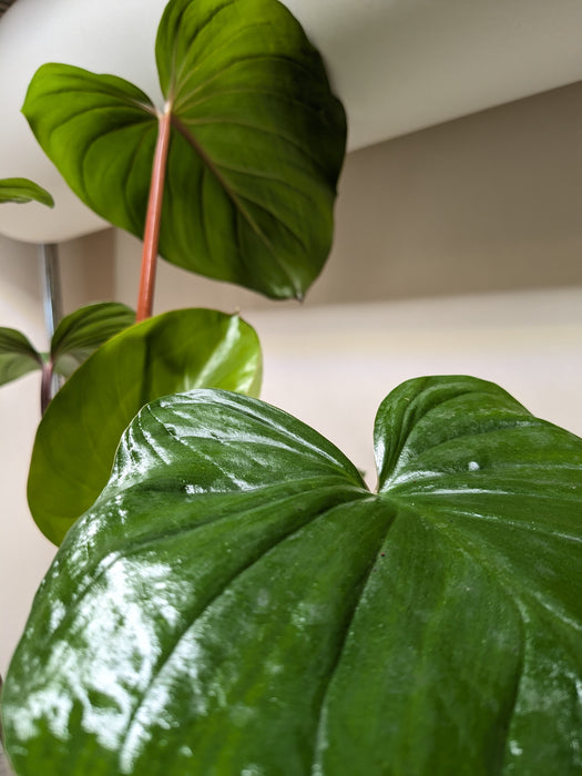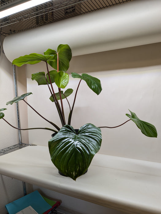 - Description: An Emerald Gem plant or Homalomena, native to tropical Asia and South America, is an upright plant with dark green, waxy, spade-shaped leaves. Since these plants are usually about 12″-30″ tall, it makes them ideal for areas with height restrictions. Although an Emerald Gem plant is a relative of the easy-care philodendron, it is a bit more finicky and requires more attention. They like to have their soil kept moist but never soggy.