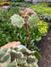 Description: The leaves of Saxifraga Tricolor are round, gray-green, and have a noticeable variegation. The edges of the leaves are often creamy white or pink, and the undersides can be a reddish-maroon color.