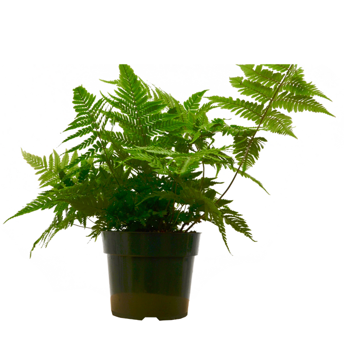 - Description: Native to east Asia, the Autumn Fern is a semi-evergreen whose papery leaves turn reddish-copper during the early growth and matures to a dark green. Preferring warmer climates and partial shade, it is commonly used as an ornamental perennial indoors and outdoors due to its bold color changes.
