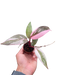 - Description: Apart from the splendid pink and dark green leaves, the plant is identified by large waxy leaves. These leaves can grow up to 9” long and 5” wide. The pinkness on the leaves is due to a lack of chlorophyll—the chemical that makes plants’ leaves green. However, some greenness on the leaves is also necessary so that the plants can photosynthesize.